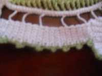 På detta sättet kan man virka runt den breda lasetten.Du ska virka 4 fastmaskor och sedan 3 luftmaskor 1fastmaska och 4 fastmaskor och 3luftmaskor 1fastmaska.