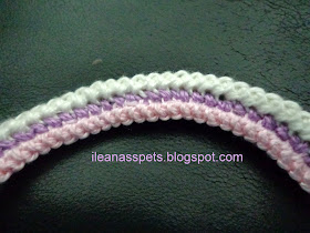 Det här kombinationen innehåller 4 olika färgade snodd ihop virkade på olika sätt . Jag tänkte göra på det här sättet en halsband, 1 armband och en bälte. När de blir färdiga jag ska visa dem, tills dess får ni se några bild på hur jag monterade dem ihop!